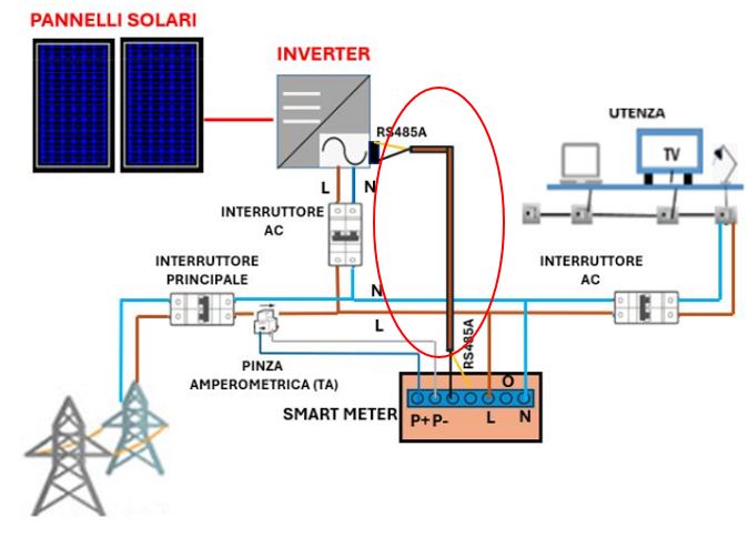 1.RS485 / Modbus RTU: È il metodo più affidabile. Un cavetto schermato (doppino) collega lo Smart Meter all’Inverter. È un protocollo industriale robusto, perfetto contro i disturbi elettromagnetici.