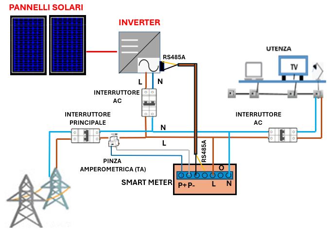 - Pinza (TA): Misura l’energia che entra/esce dal contatore.