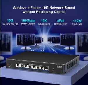 Switch PoE 10G a 8 Porte Non Gestito, VIMIN Switch Power Over Ethernet 10Gbps