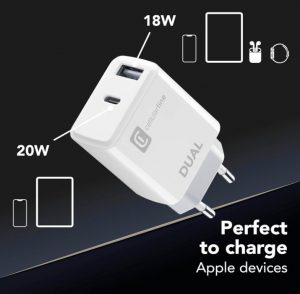 Caricabatterie da rete con 2 porte USB e USB-C per la carica simultanea di due dispositivi Apple