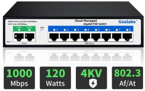 Goalake Gigabit Switch Poe a 8 Porte, Switch Ethernet Gestito Cloud, Switch PoE+ a 10 Porte da 120W