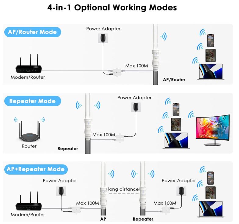 Ripetitore esterno WiFi, punto di accesso wireless, ripetitore/modalità Ap/Router/WISP