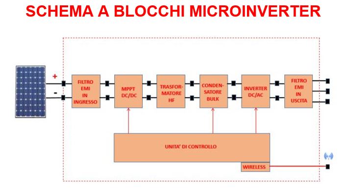 Il microinverter è un apparato compatto e connesso ai singoli pannelli, o integrato nel pannello stesso.