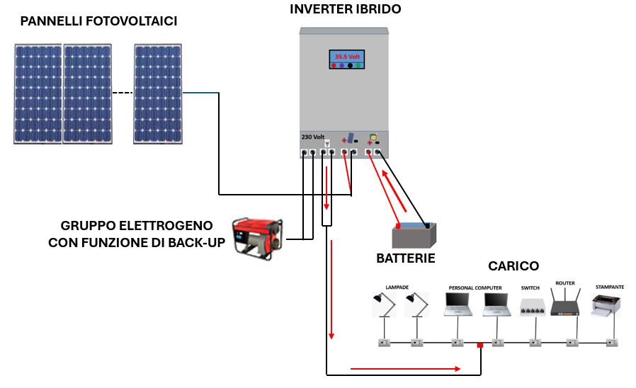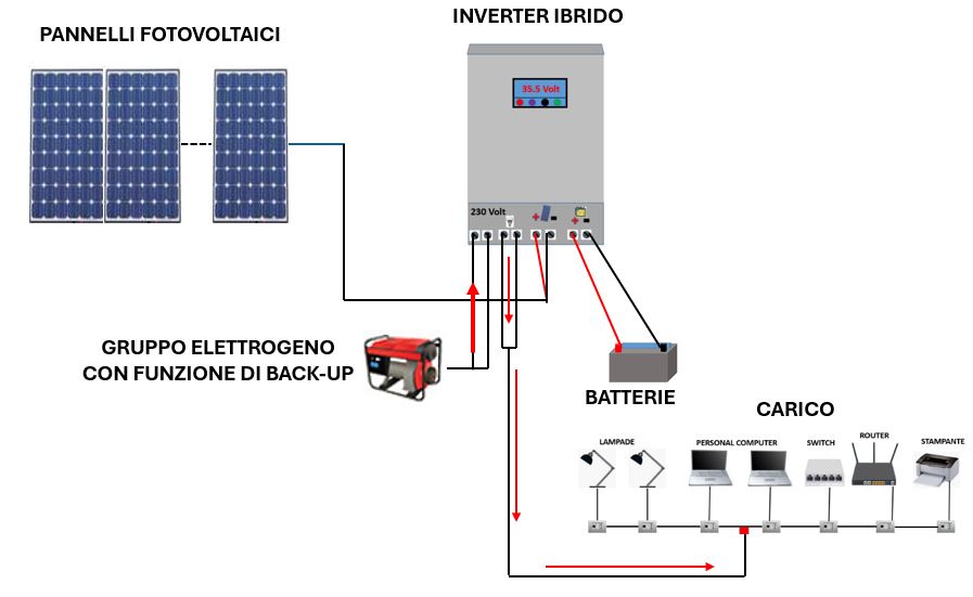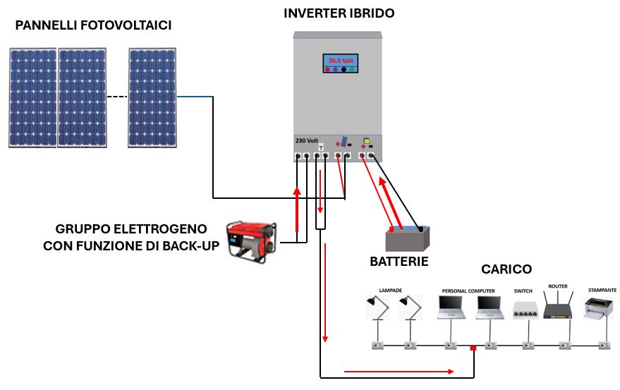 Inverter ibrido con collegato il carico: