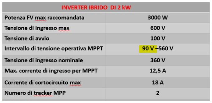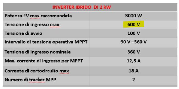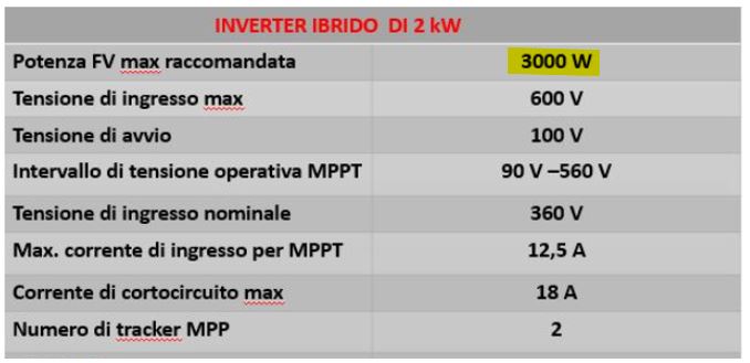 4. La potenza del campo fotovoltaico deve essere inferiore alla potenza massima di ingresso all’inverter1,380 ˂ 3 kW