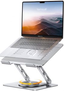 - La regola: Il bordo superiore dello schermo deve essere all’altezza dei tuoi occhi. Se usi un laptop, fermati subito: l’uso prolungato del laptop appoggiato sul tavolo è la causa n.1 di cervicalgie.